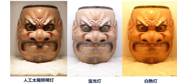 今回は、非常に歴史のある能面に人工太陽照明灯を照らさせていただきました。