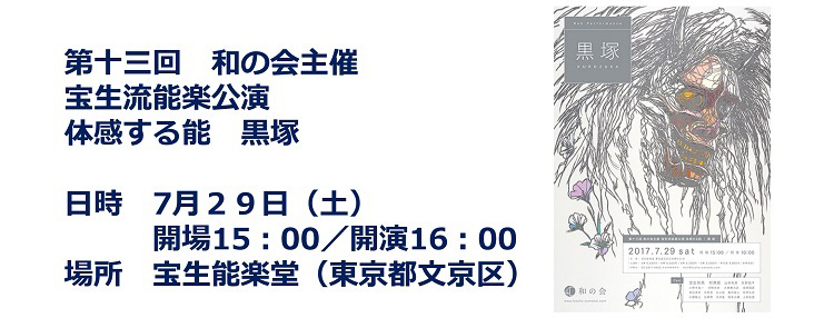 宝生流能楽公演「体感する能 黒塚」が開催されます。