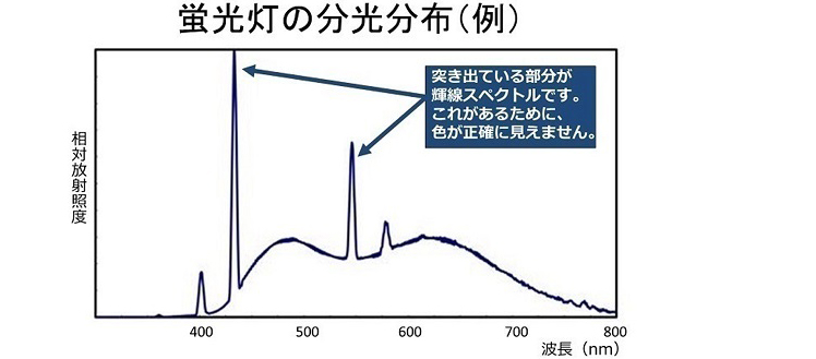 蛍光灯は、特定の波長が強く出る輝線スペクトルがあるので、
