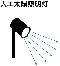 人工太陽照明灯は、狭い面を強く照らす指向性 (光の直進性)の高いスポットライト