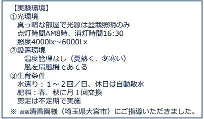盆栽育成には、4000ルクス程度以上の明るさが必要と言われてるんだ。