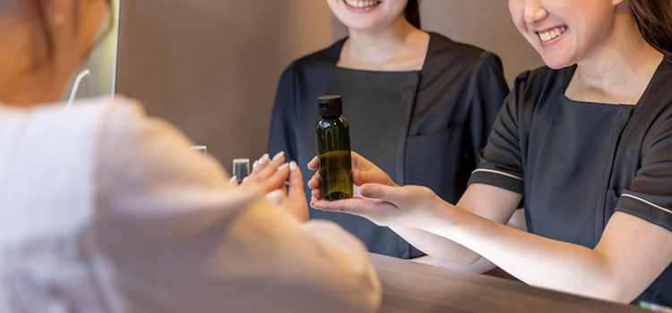 デパートの化粧品売り場では、販売員(ビューティアドバイザー)がお客様に直接メイクをしたり、販売員自ら自分の手に化粧品を塗って色を見せたり、このような光景をよく見かけます。高級でハイブランドな化粧品は、メイクの仕方まで丁寧に指導することで販売を促進させています。クレンジングや保湿などのお肌の手入れから、ファンデーションとチーク、アイシャドー、ルージュなどの組み合わせ指導など、実に行き届いた提案をしてくれます。近年ではAIを使ったコスメティックコンサルティングや、コロナ禍での店頭販売ができない代替販売方法としてのオンライン指導なども行われており、化粧品の販売も多様化が進んでいます。