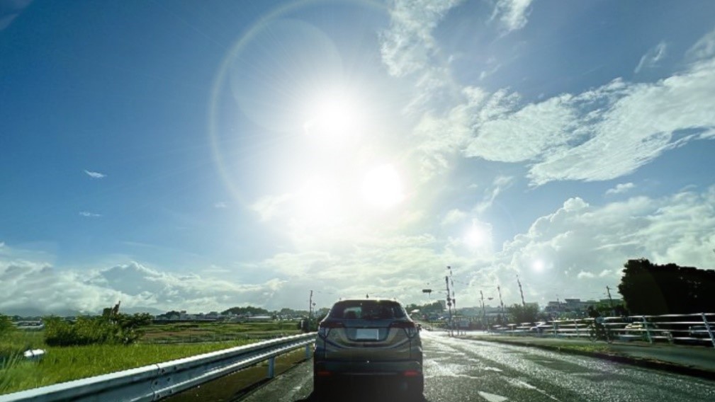上の写真は、車のドライブレコーダーの画像(イメージ)です。自動車のドライブレコーダーの画像には、このようなゴーストやフレアが見られることがあります。このゴースト・フレアが、もし自動運転用車載カメラの映像の中にあったら、障害物などの発見や認識が遅れ、事故につながる可能性も出てきてしまいます。