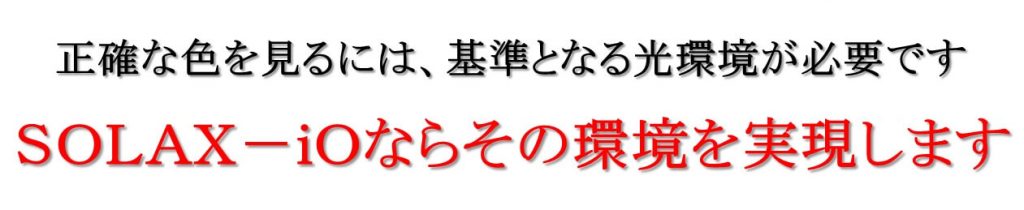 注意点3. 3条件はすべて満足しなければならず、1つでも欠けてはならない。SOLAX-iOは、上記の条件を全てクリアーしているので、色彩評価用として最適な照明です。