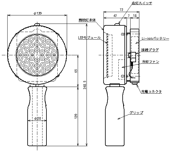 バッテリ駆動時間 約2時間(LED負荷)