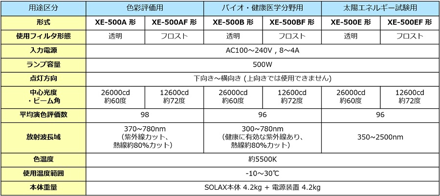 紫外線および赤外線のエネルギーは用途区分によりフィルターによって調整されていますので、お客様の用途により紫外線・赤外線の有無や光線の拡散度合、強弱などの必要条件から仕様をお選びいただけます。